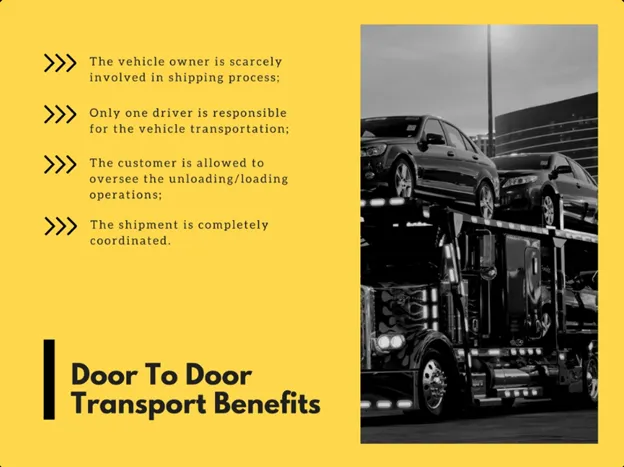 Door-to-door vehicle shipping provides great conditions for choosing the shipping company and drivers, since it allows vehicle pickup and delivery at any individual’s address. This will help you avoid going to a terminal, hence cutting the time and energy especially from those with tight schedules or poor means of transport.
